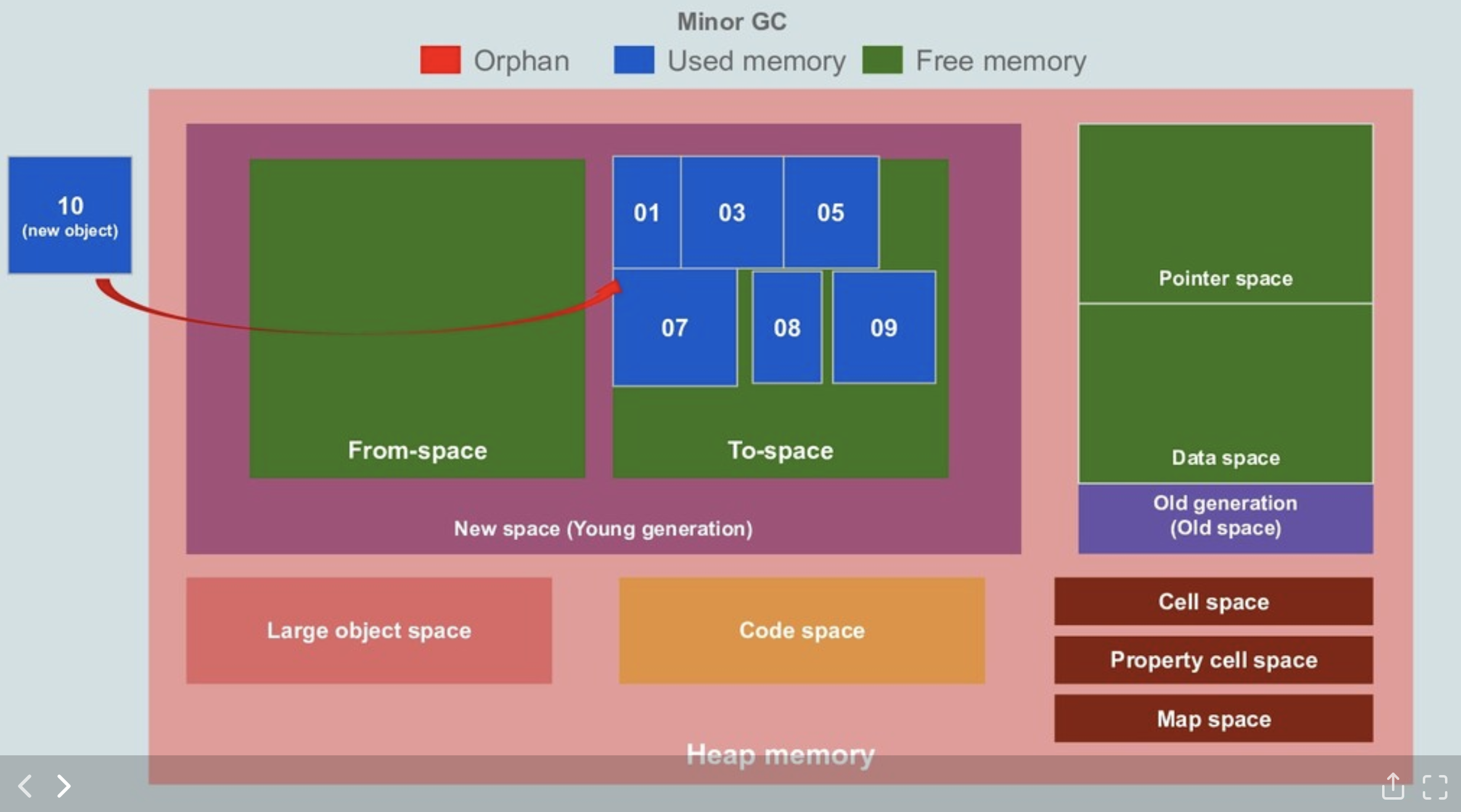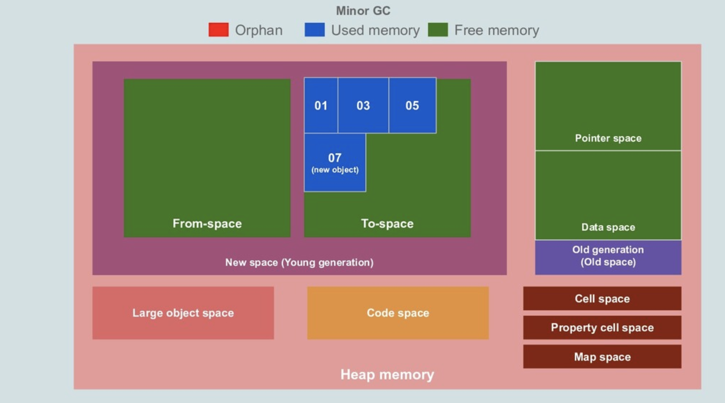 이 과정을 V8의 Minor GC라 하며, 사용된 알고리즘을 Scavenge라 한다.